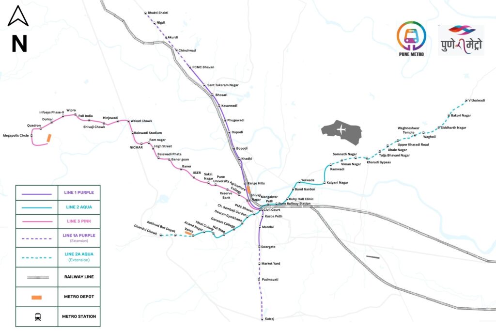 Metro in Pune 14 February 2026 by kb_author Currently three lines in Pune Sreedit, CC0, via Wikimedia Commons https://commons.wikimedia.org/wiki/File:Pune_Metro_Map_2025.jpg